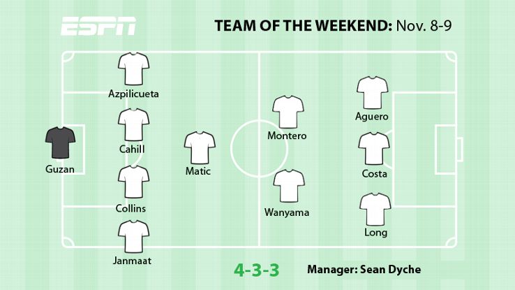 Centre-back: For a time at Anfield on Saturday, it seemed as if the entire footballing universe was orbiting around Gary Cahill. The Chelsea man was involved in absolutely everything of note in the first half against Liverpool, Nicol notes -- even the Reds' opener, as Emre Can's shot flicked off him and past Thibaut Courtois. But it took the England centre-back just five minutes to make amends, stabbing home an equaliser after a scramble in the box. As Mariner remarks, Cahill is a "rock" at the back for Jose Mourinho and provides a clear and present danger to opposition back lines whenever he saunters forward for set pieces.